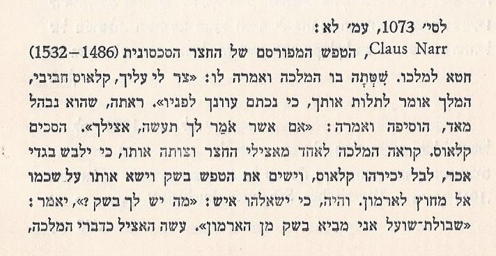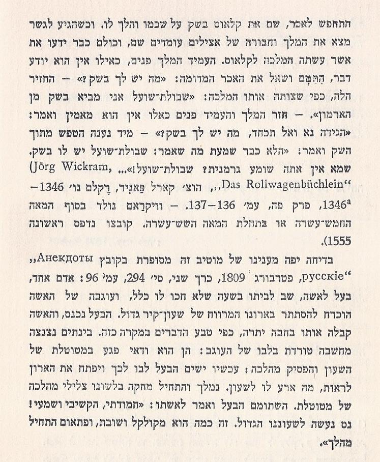 שני חלמאים נסעו יחדיו לווארשה, וכדי לקמץ בהוצאות קנו יחדיו כרטיס אחד לרכבת, והיתנו זה עם זה: מחלם ועד מחצית הדרך ישׁב אחד מהם בקרון כמנהג כל אדם, והשני יהא מוטל למטה, בשק מתחת לספסל; ממחצית הדרך ועד ווארשה יעלה תחתון למעלה וירד עליון למטה. כשזזה הרכבת ממקומהּ ונכנס הקונדוקטור לבדוק את הכרטיסים, דרך ובא לו עד לחלמאים, והושיט לו העליון את הכרטיס שבידו, נסתכל הקונדוקטור בשק שמתחת לספסל ושאל: ומה יש לך כאן, בשק? השיב החלמאי: כלי-נחושת יש לי כאן. לשם מכירה בווארשה. פיקפק הקונדוקטור ובעט בעיטה יפה בשק. מיד נענה החלמאי מתוך השק והשמיע קול: דזין! דזין!... |