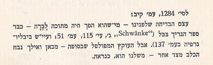 אחרי שׁינה של שבת ישבו יהודים בחבורה וסיפרו ניסים ונפלאות. גמר אחד לספר, פתח שני וסיפר: פעם אחת הייתי מהלך בדרך, ופתאום זינק עלי מתוך חצרו של גוי כלב שחור, ממש ארי. אילו לא היתה אותה שעה דעתי מיושבת עלי, היה קורע אותי כדג. מה עשיתי? כיוון שפער פיו, מיד תפסתי לו בלשונו והייתי מושך והולך עד שהפכתי את הכלב כּולוֹ מתוֹכוֹ לברוֹ. תמהו השומעים ושאלו: ומה היה סופו של דבר? לא-כלום, – החזיר המספר. – מכאן ואילך נבח מן הצד האחר... |