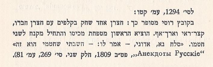 אי אתם יודעים, כמה קשים ימי-ערפל בלונדון. פעם אחת הייתי מהלך בכרך גדול זה, אני וחברי עמי. פתאום קפץ זבוב לתוך חוטמי ונתעטשתי. מיד הוצאתי מטפחתי מכיסי וביקשתי לקנח חוטמי. אלא שבו-ברגע ירד ערפל על העיר, ומחמת חושך טעיתי וקינחתי חוטמו של חברי... |