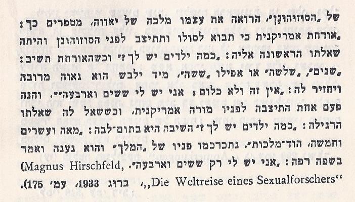 שר גדול בא לעיירה והציגו לפניו את כל המשמשים בקודש, וגם את המלמד של התלמוד-תורה. נסתכל בו השר ושאל: כמה ילדים יש לך? - שלושים ושבעה, – השיב המלמד. - אהה! – מילא השר צחוק פיו. ראה המלמד שמוחו המגושם של הגוי אינו תופס, והסביר לו: - הוד מעלתו, יש לי גם עוזר... [63] |