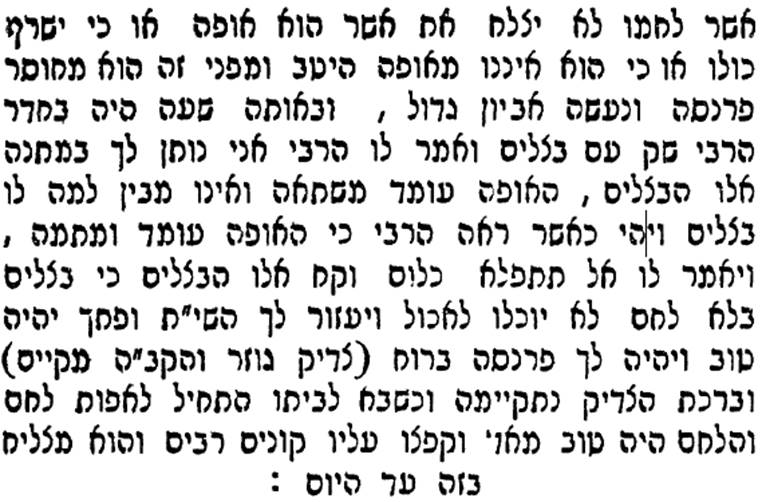כי בצלים בלא לחם לא יוכלו לאכול ויעזור לך השי״ת [השם יתברך] ופתך יהיה טוב