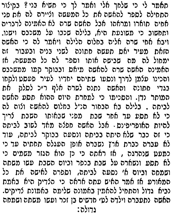 על הדרך. כשמעה זאת אחזתה רעדה כי זה הוא אותו הבחור מבאליחאב. המה נוסעים הלאה ויראו בית מרחוק ויעמדו שם, ותלך